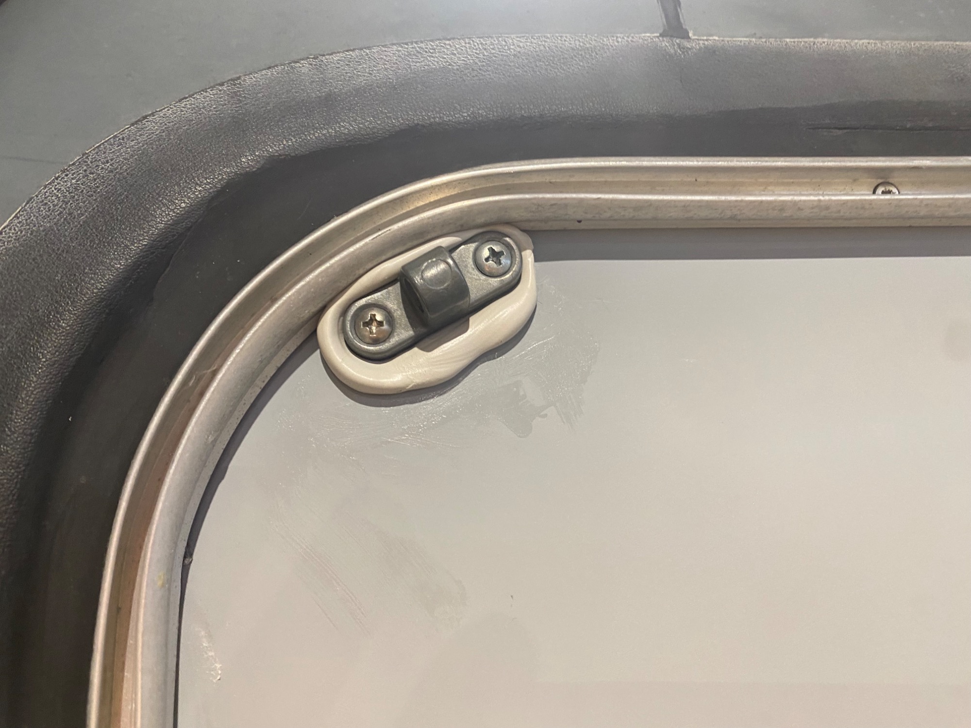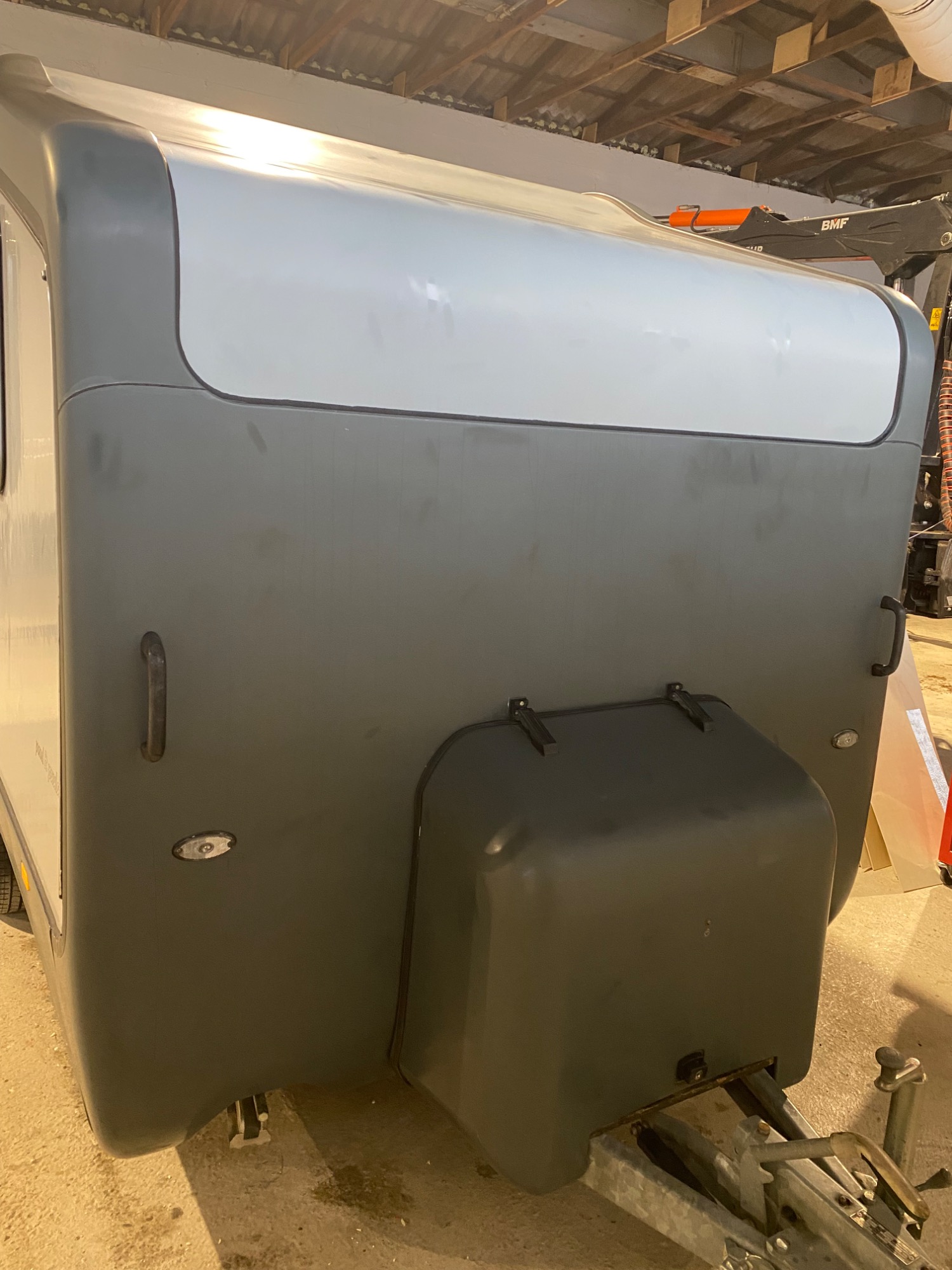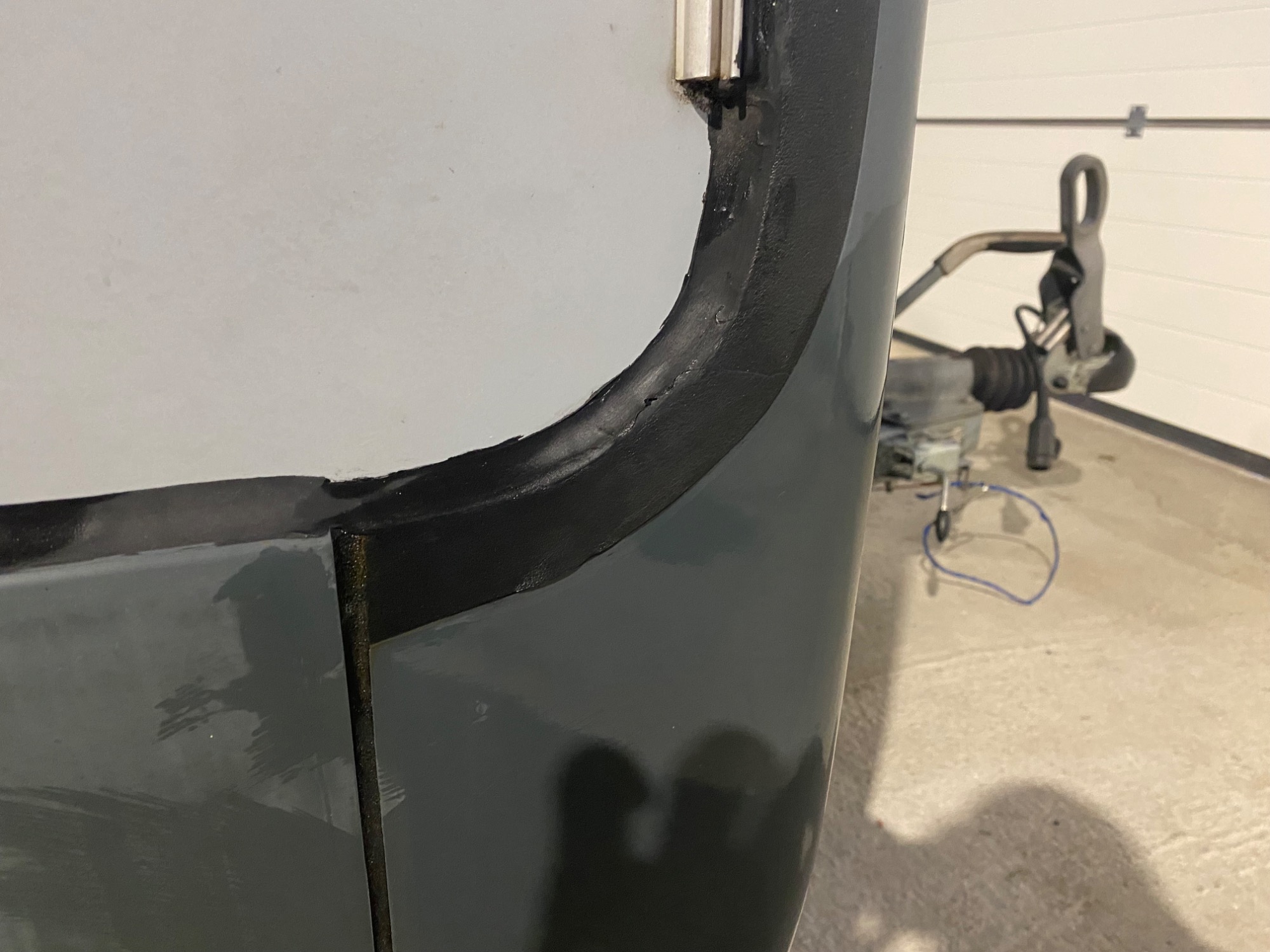 Abdichtung aller Vorzelthaken und der umlaufenden Dichtkante, Neuabdichtung Fenster Türseite, neue Aussteller, Rollo Küche repariert, Grundreinigung Aufbau