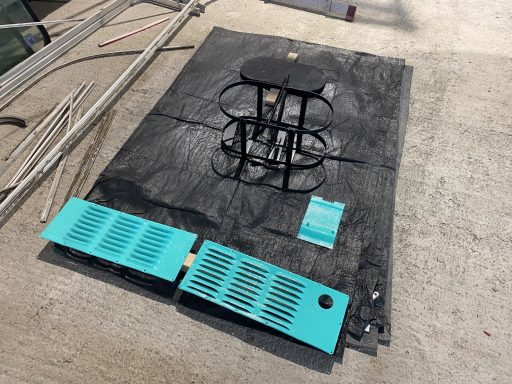 Anfertigung einer Unterkonstruktion aus Holz am Dach innen, als Anschraubung und Klemmung von Heki und Lüfter.Verkleidung innen mit dünnen Mehrschichtplatten und Bezug mit Filz in beige. Einbau einer Steuereinheit, die es erlaubt die Drehrichtung des Lüfters umzuschalten und die Drehzahl fein zu regeln. Montage und Eindichtung von Heki und Lüfter und Reinigung des Fahrzeugs.