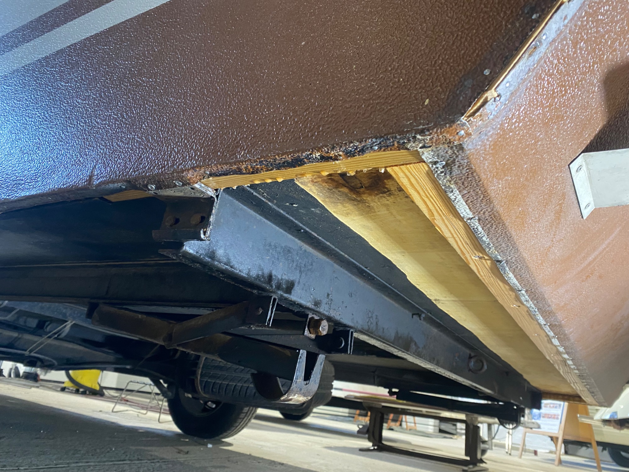 Damit das so bleibt haben wir den Unterboden und Stahlrahmen gereinigt und den Stahlrahmen von innen und aussen gegen Rost behandelt und anschliessend konserviert bzw. lackiert.